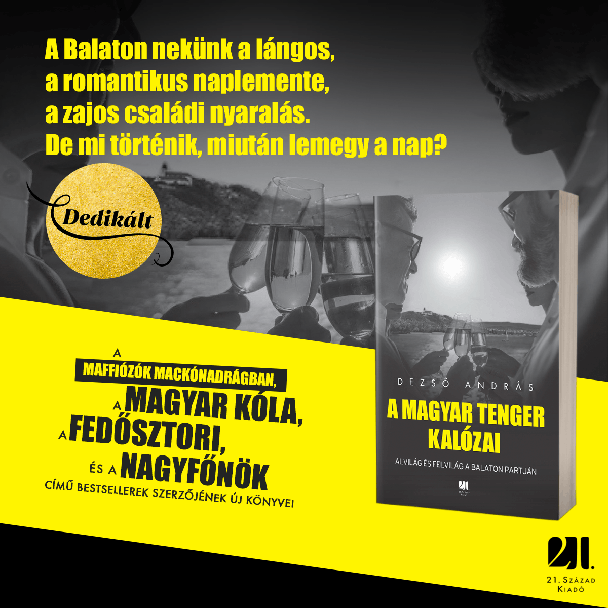 A Maffiózók mackónadrágban, a Magyar kóla, a Fedősztori és a Nagyfőnök című bestsellerek szerzője most a Balaton sötét oldalát tárja fel. Bemutatja az egymással rivalizáló legendás siófoki szórakozóhelyeket, a diszkók világát, ahol a kidobóemberek osztották a törvényt és a hírhedt veszprémi alvilágot, ami a főváros legveszedelmesebb gengsztereit szolgálta ki. Az eldobott kézigránátok, védelmi pénzek, a megtorlást hozó árulások földjét. Piti bűnözők és nagypályás maffiózók, kalandorok és szélhámosok, akik a tóparton próbáltak birodalmat építeni – néha szó szerint a semmiből.