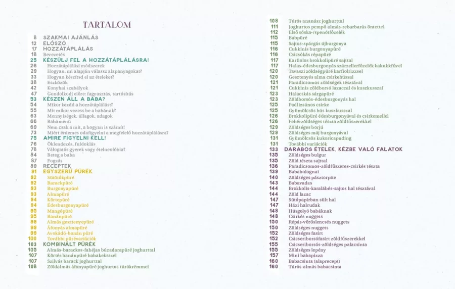 A hasznos gyakorlati útmutató mellett a könyvben 129 egészséges és bababarát receptet is találsz: egyszerű és kombinált püréket, totyogósoknak való ételeket, egészséges nasikat, házi babakekszeket, szülinapi tortákat, ünnepi finomságokat. Hiszen minden étel, amit te készítesz gyermekednek, igazi ajándék!