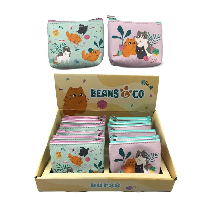 Praktikus, kis méretű pénztárca vidám cicás mintával.